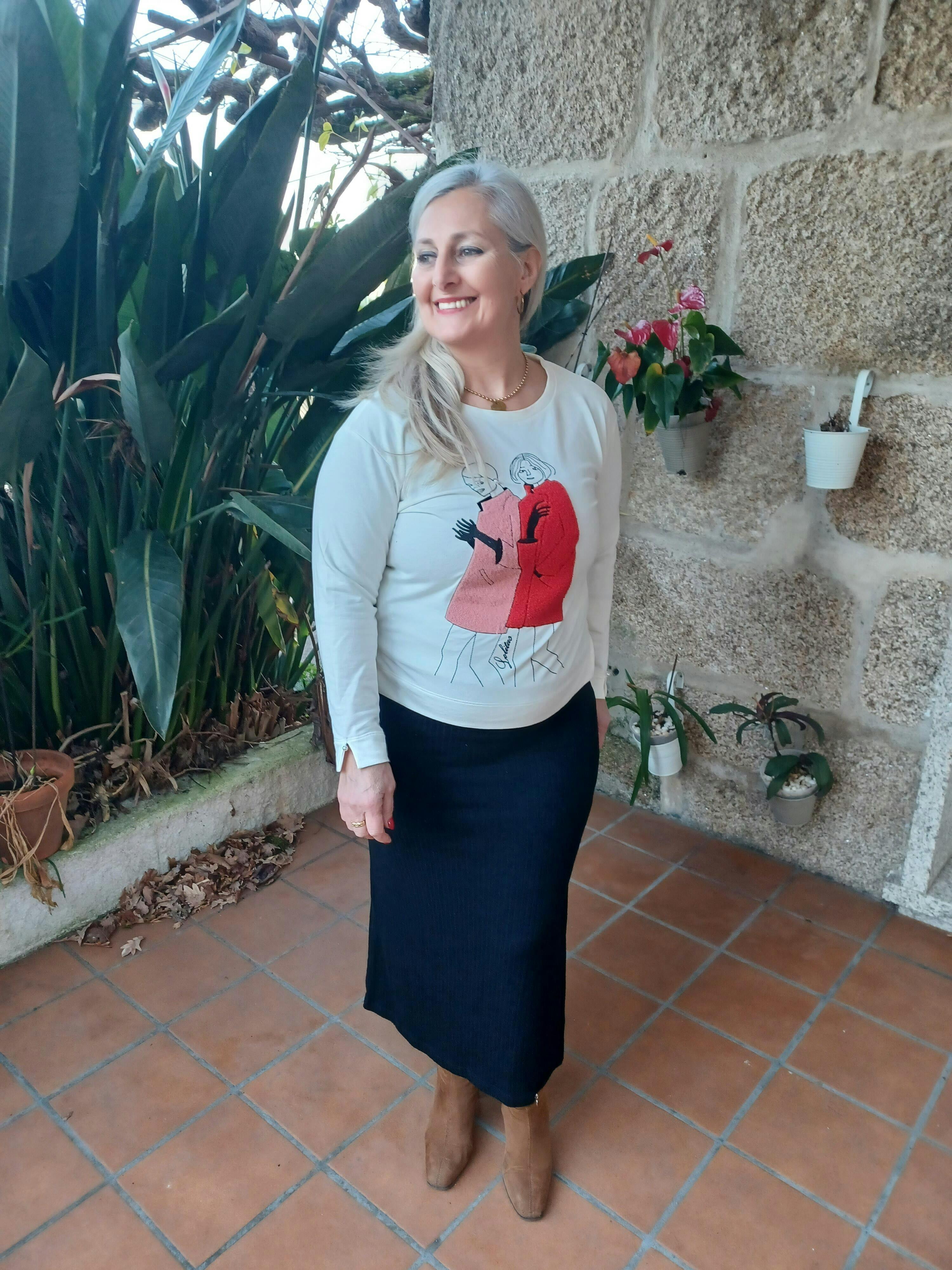 Camiseta blanca bordado bailarinas strass con manga larga Lolitas&L