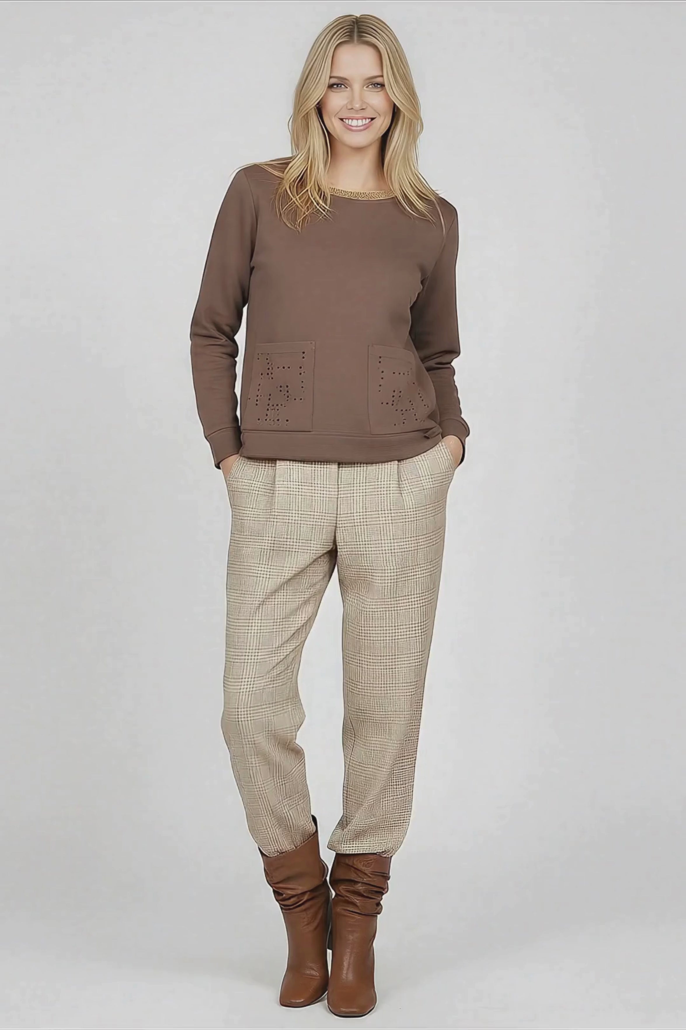 Sudadera marrón con bolsillos strass y cuello lourex Lolitas&L