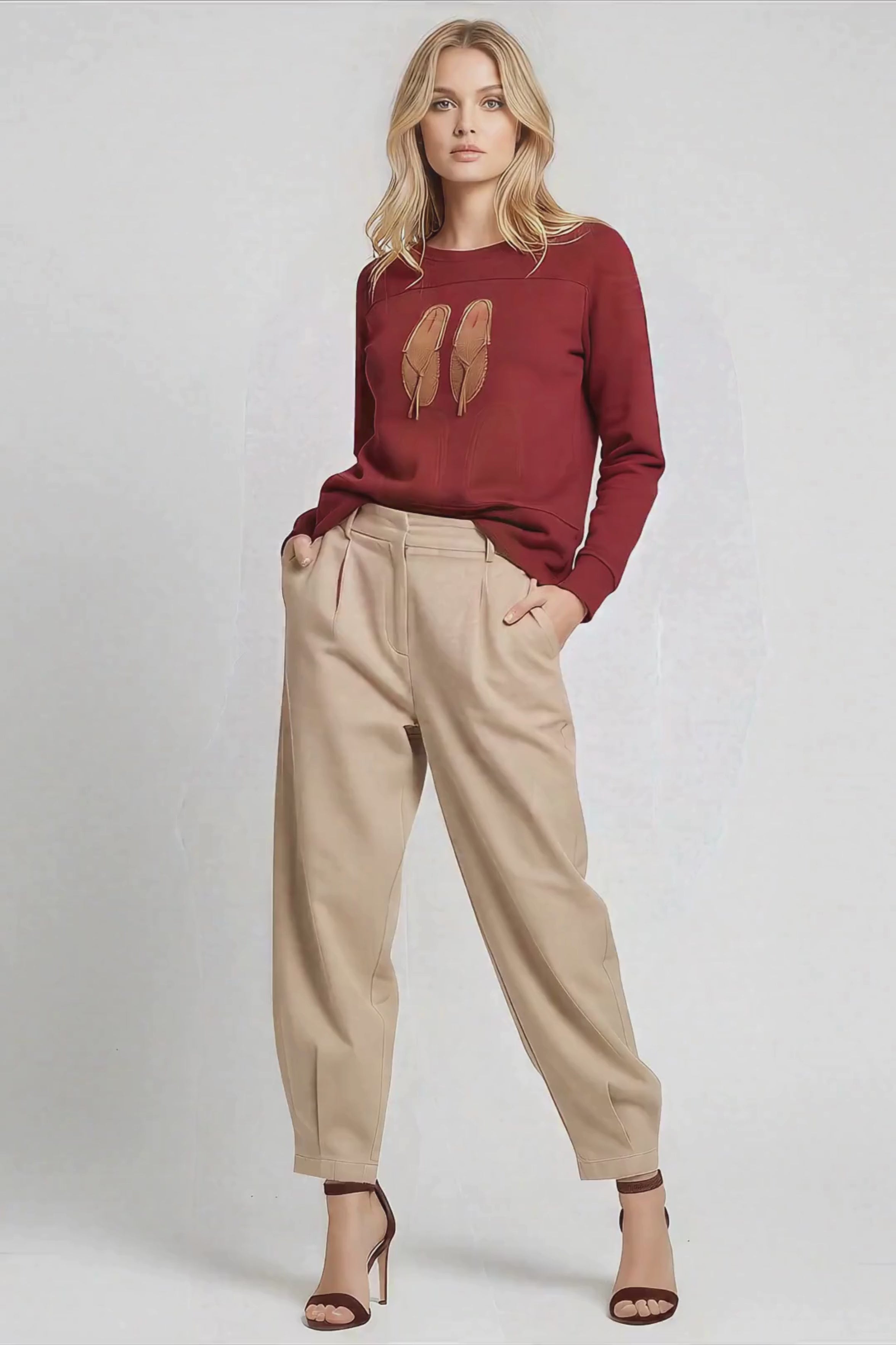 Sudadera marron bordado bolsito antelina manga larga Lolitas&L