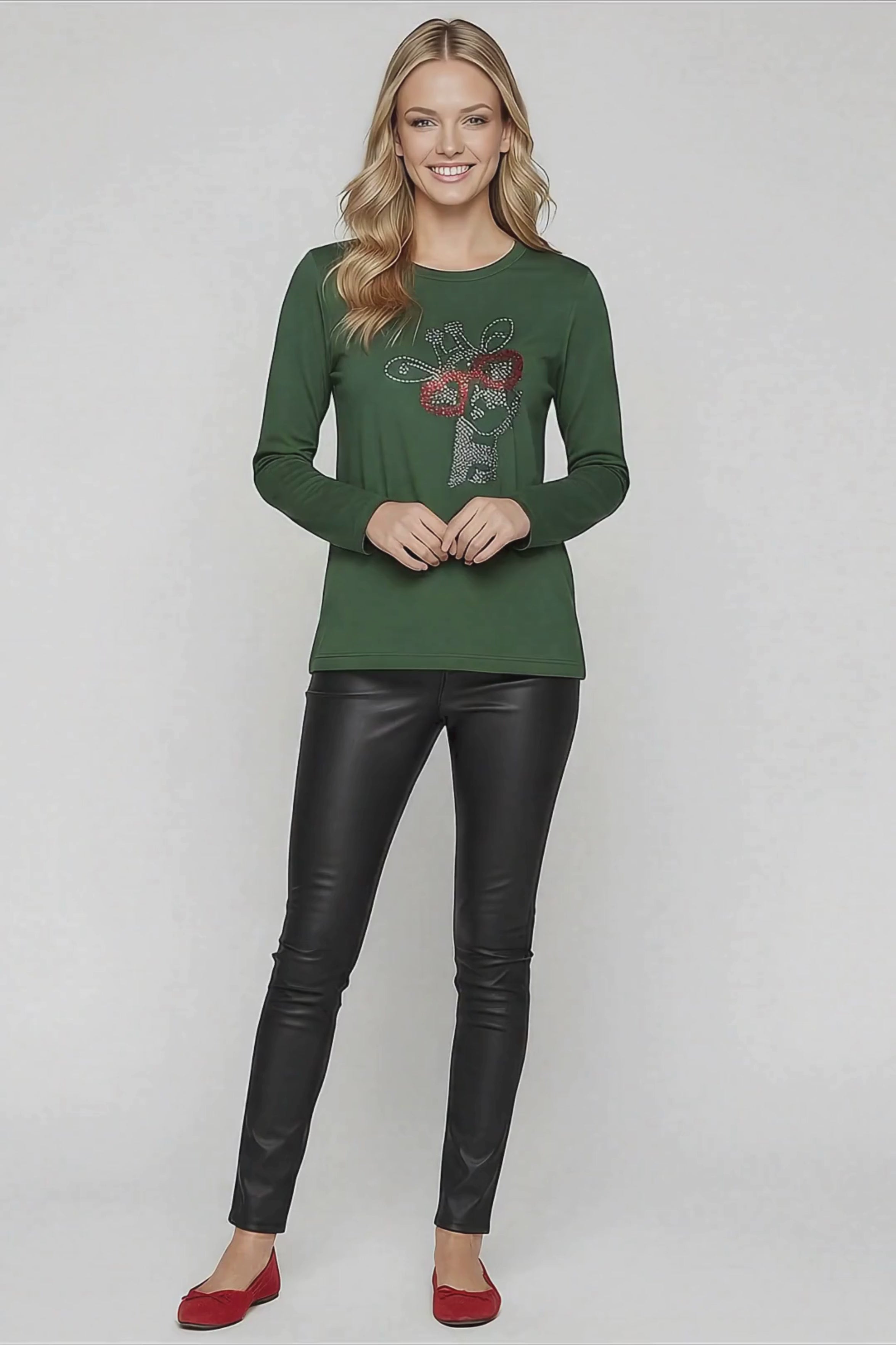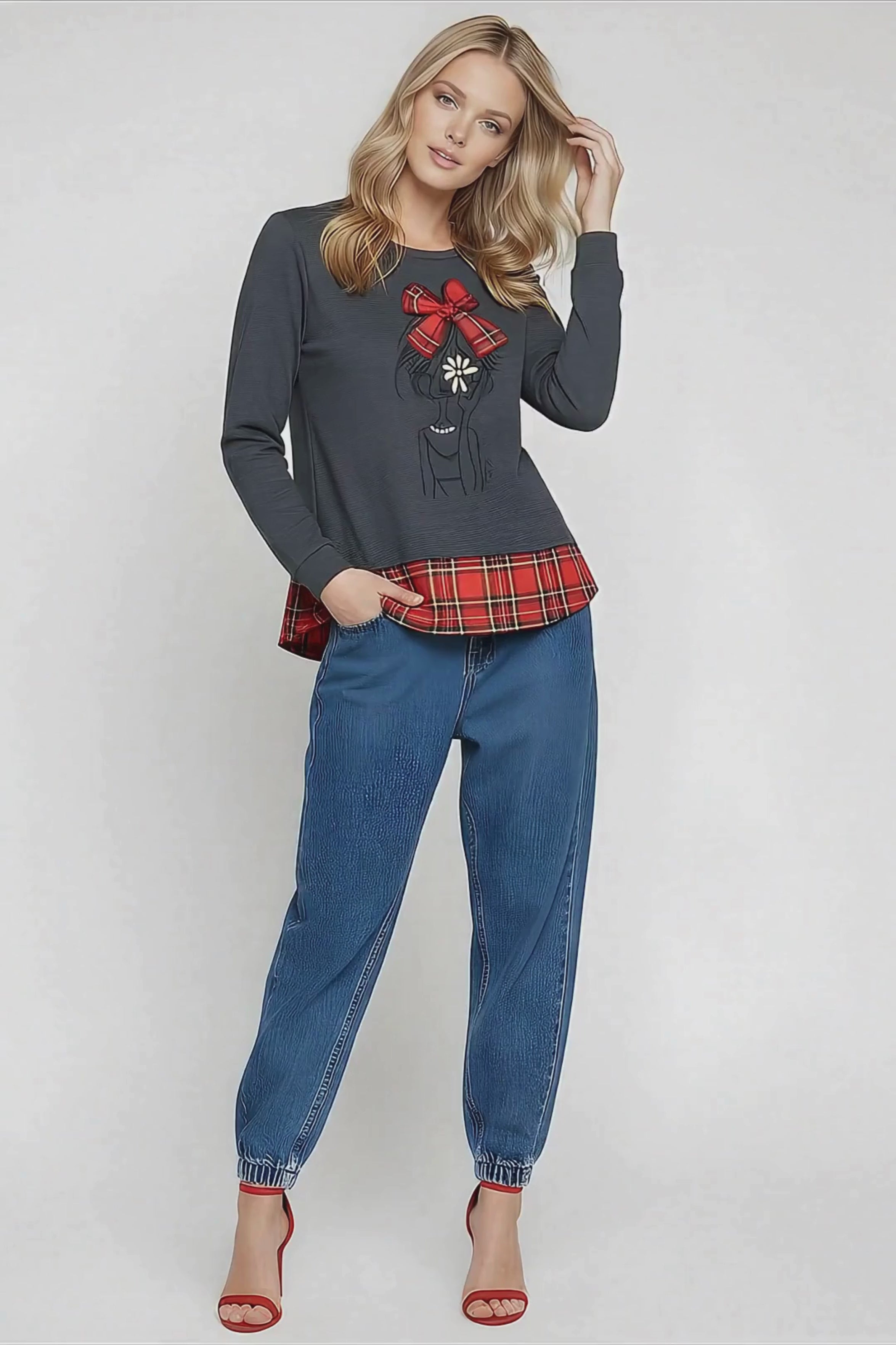 Camiseta verde con estampado muñeca y lazo cuadro escoces Lolitas&L