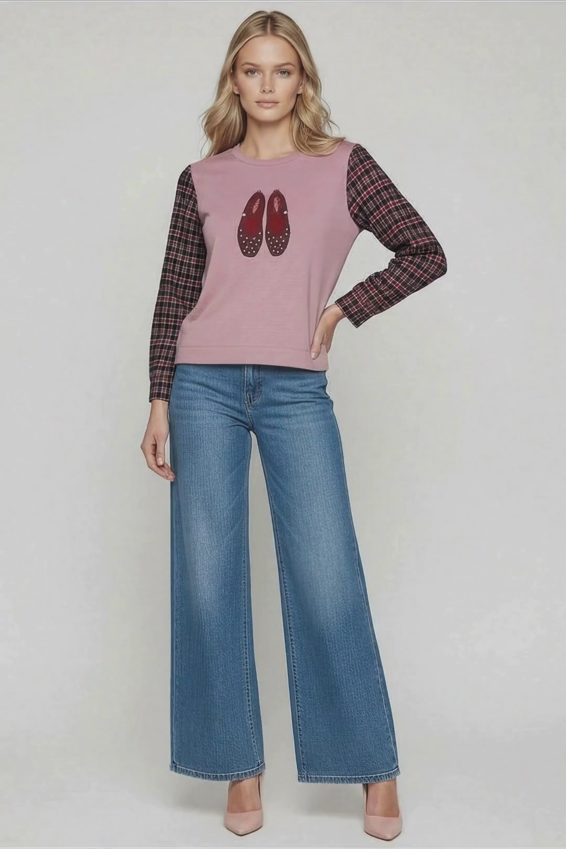 Camiseta verde con estampado muñeca y lazo cuadro escoces Lolitas&L