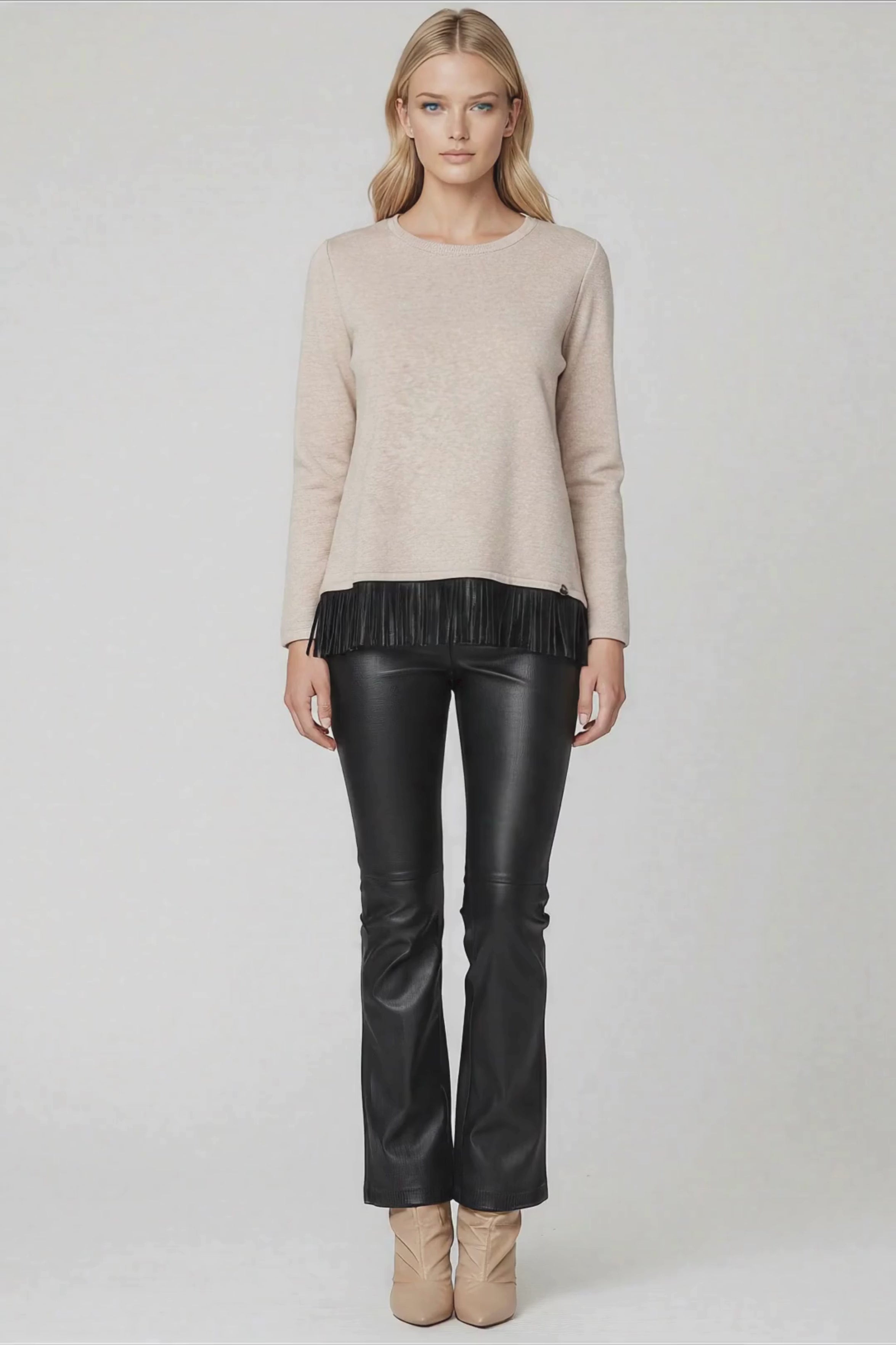 Camiseta punto beige con flecos polipiel Lolitas&L