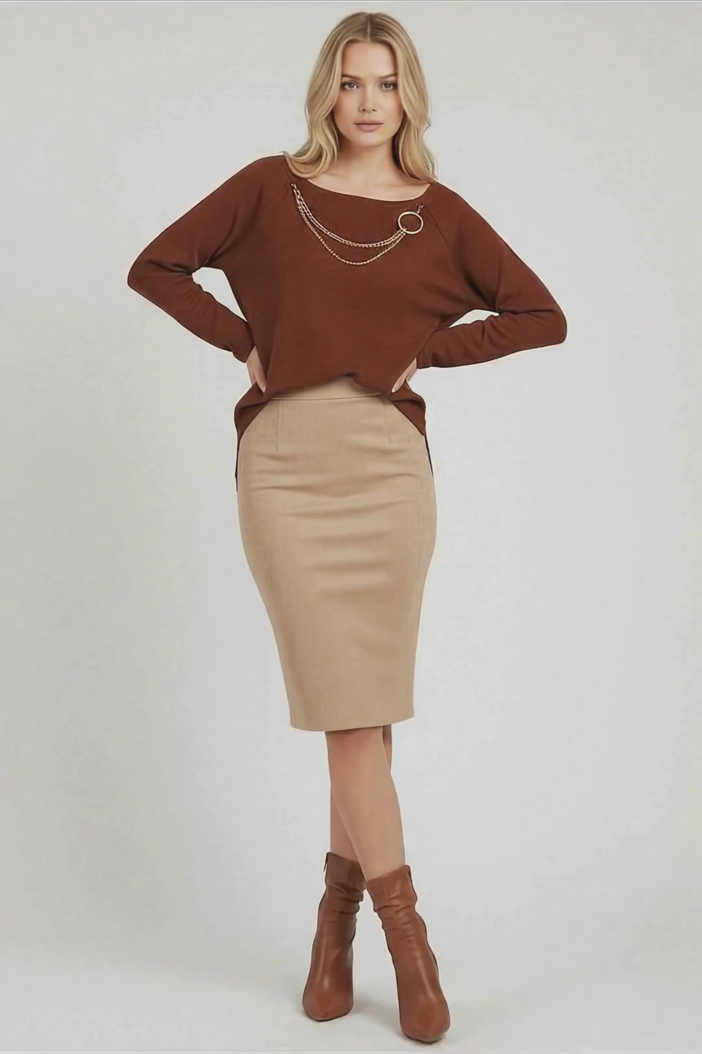 Camiseta de punto marrón con cadena dorada en el escote Lolitas&L