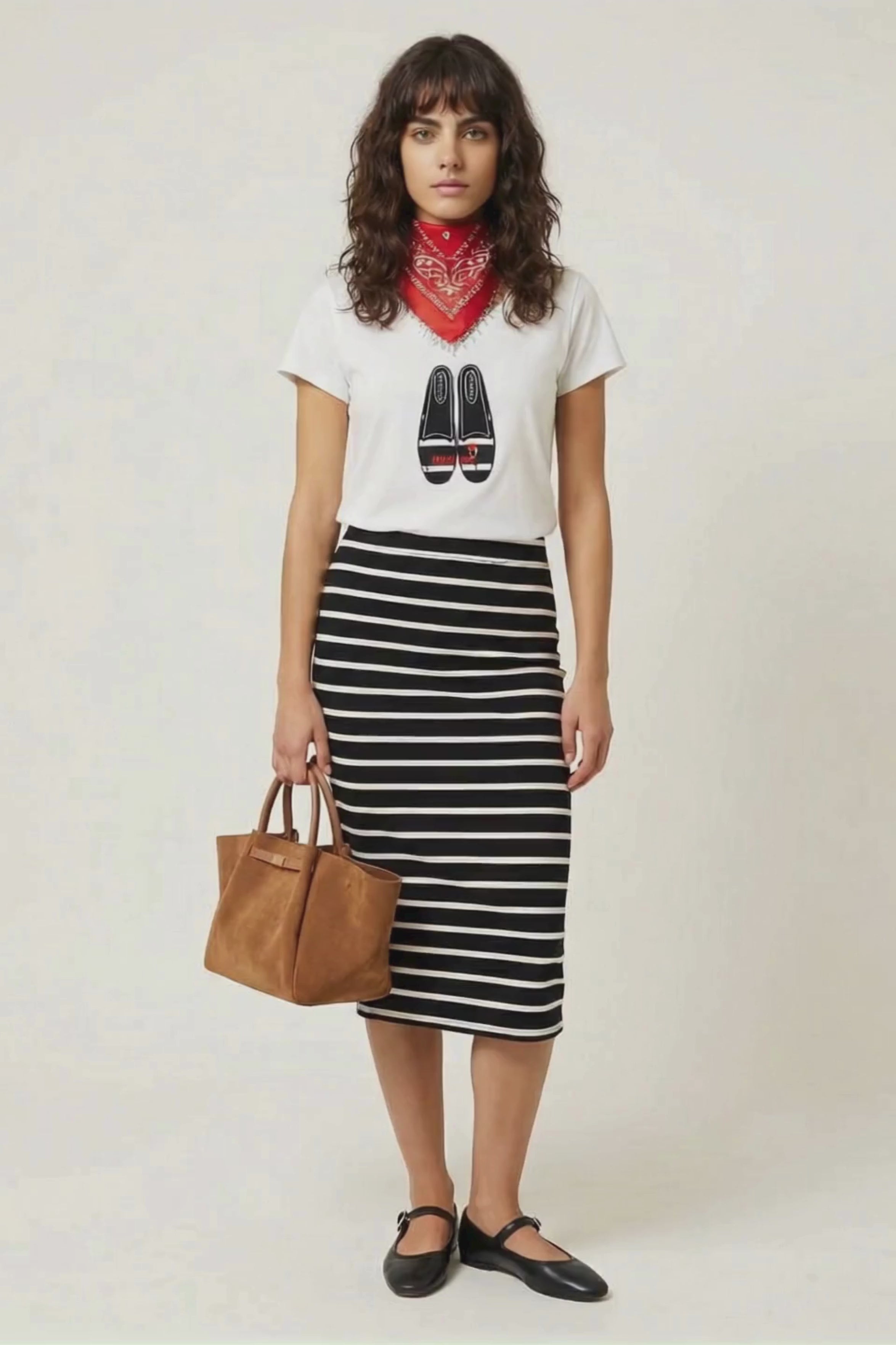 El diseño de las manoletinas bordadas convierte esta camiseta básica blanca en una prenda con carácter, perfecta para mujeres que buscan prendas cómodas pero con detalles únicos. La manga corta la hace ideal para primavera y verano, y su versatilidad permite combinarla con jeans, faldas o pantalones de cualquier estilo.