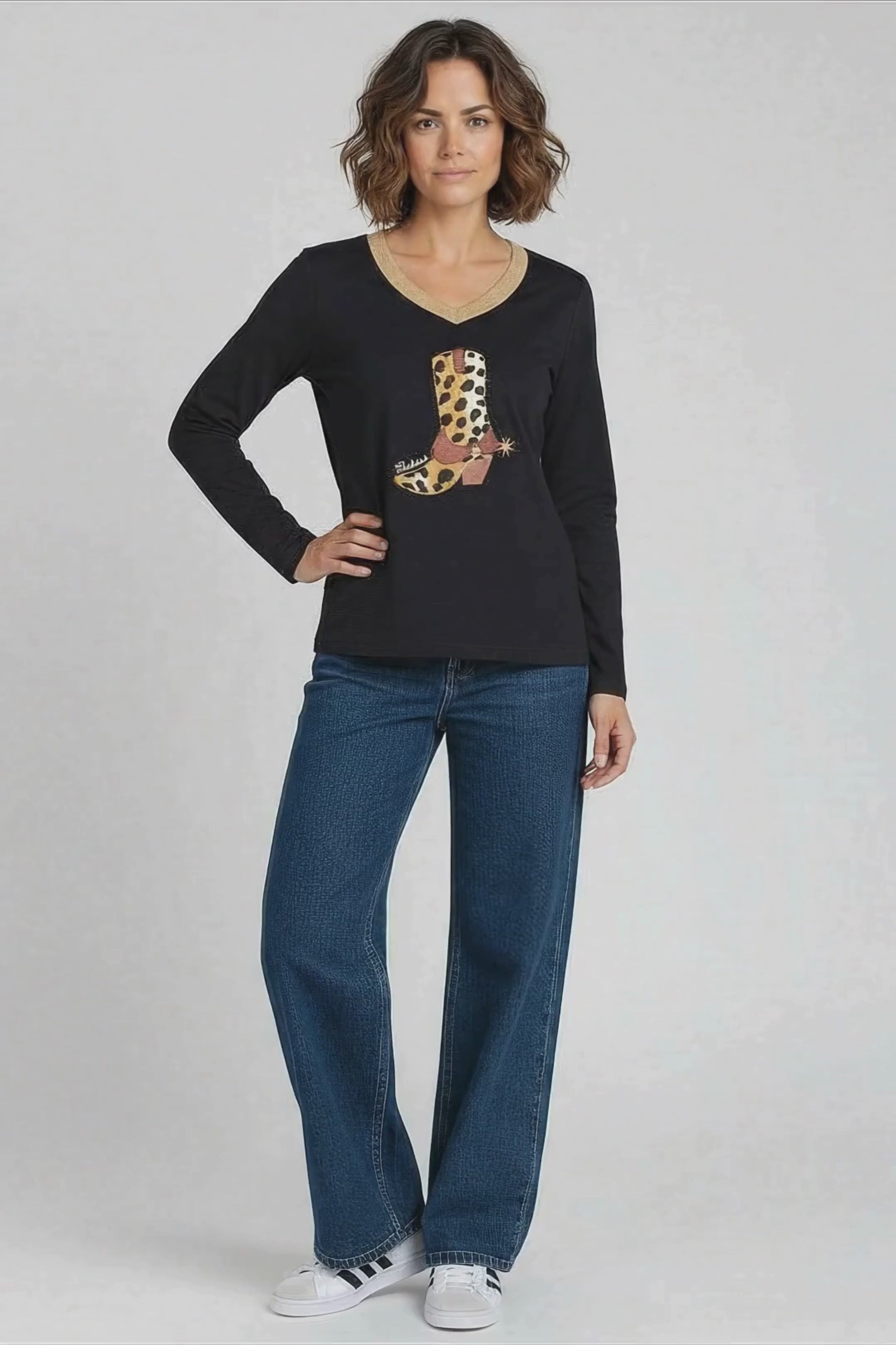 Camiseta negra con bordado bota cowoy manga larga Lolitas&L