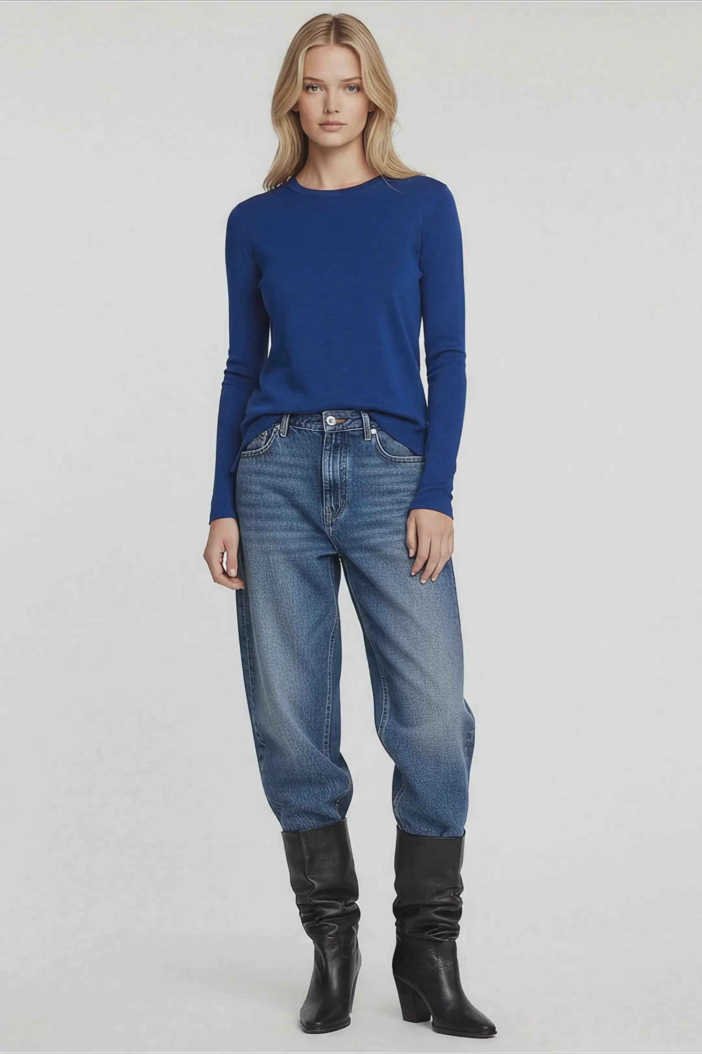 ¡BAM! Revelan su verdadera personalidad. Esta camiseta azul de punto es exactamente esa pieza sorpresa que estabas buscando. Porque tú no eres de las que pasan desapercibidas, y tu ropa tampoco debería serlo.