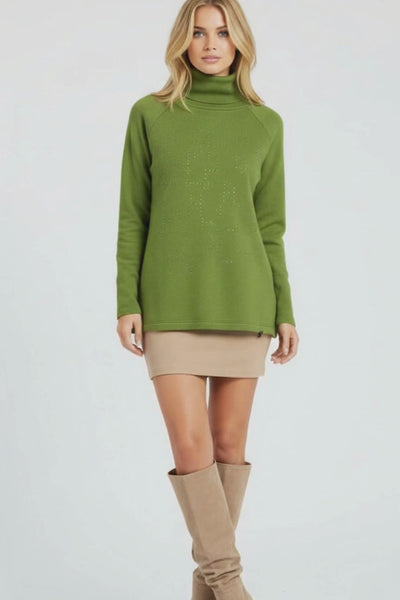 Camiseta de punto verde cuello alto con strass Lolitas&L