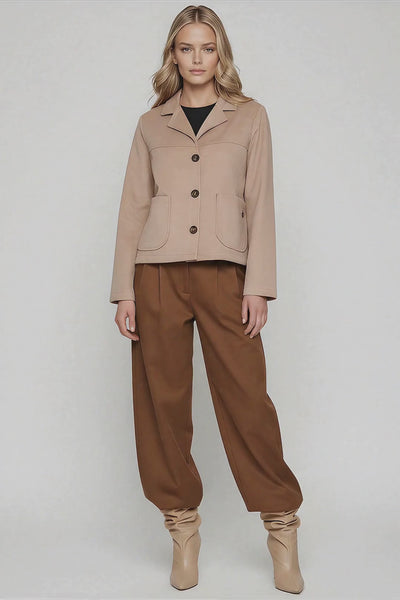 Porque no todas las chaquetas para mujer combinan sastrería impecable con funcionalidad real. Porque el beige en antelina es esa inversión atemporal que funciona temporada tras temporada. Porque el corte a la cintura con canesú crea esa silueta favorecedora que te hace sentir increíble cada vez que te lo pones. Porque los bolsillos de plastrón demuestran que esta es una pieza pensada para tu vida real, no solo para el escaparate.