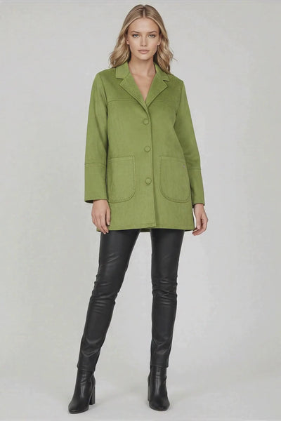 Hay momentos en la vida en los que necesitas hacer una declaración sin decir una palabra. Esta chaqueta verde manzana de antelina es precisamente eso: tu voz silenciosa que grita personalidad, estilo y valentía. Imagina entrar en cualquier sitio y sentir cómo el color te da ese impulso de confianza que estabas buscando. No es solo una chaqueta, es tu dosis diaria de alegría convertida en prenda. Porque tú no eres una mujer más del montón, y tu armario tampoco debería serlo.